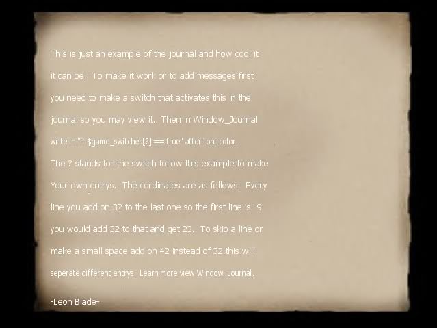 Now the last thing to discuss took me about 23 min to make. Its the journal scene. To use this press LEFT or RIGHT to flip between 3 pages. This works by using variables and switches.